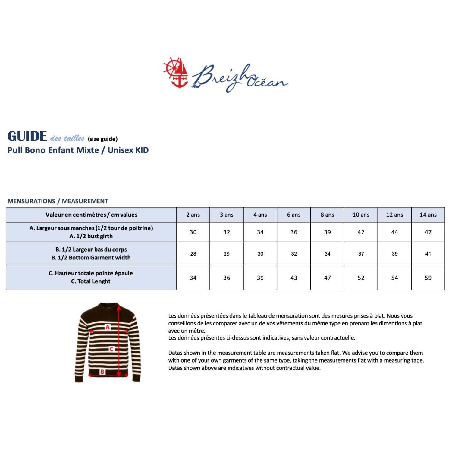 Disponible du 1 au 14 ans, ce pull marin enfant fille s’adapte à toutes les morphologies. Pour choisir facilement la bonne taille, référez-vous à notre guide pratique. Et si besoin, notre équipe est là pour vous conseiller avec plaisir.